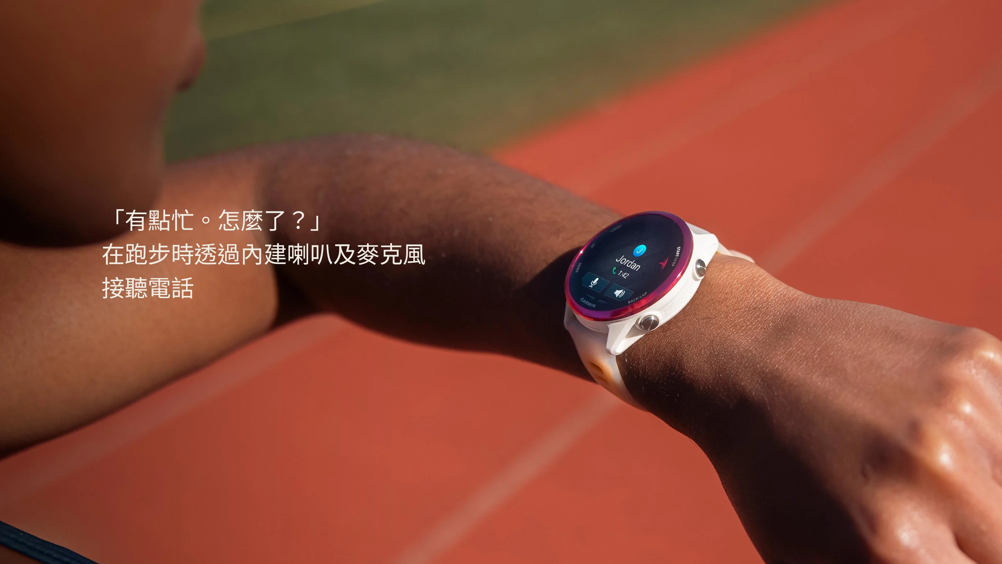與智慧型手機配對,即可在手錶上播接電話。另外還可使用語音指令控制手錶功能 — 或用手機的語音助理回覆文字訊息及使用更多功能。