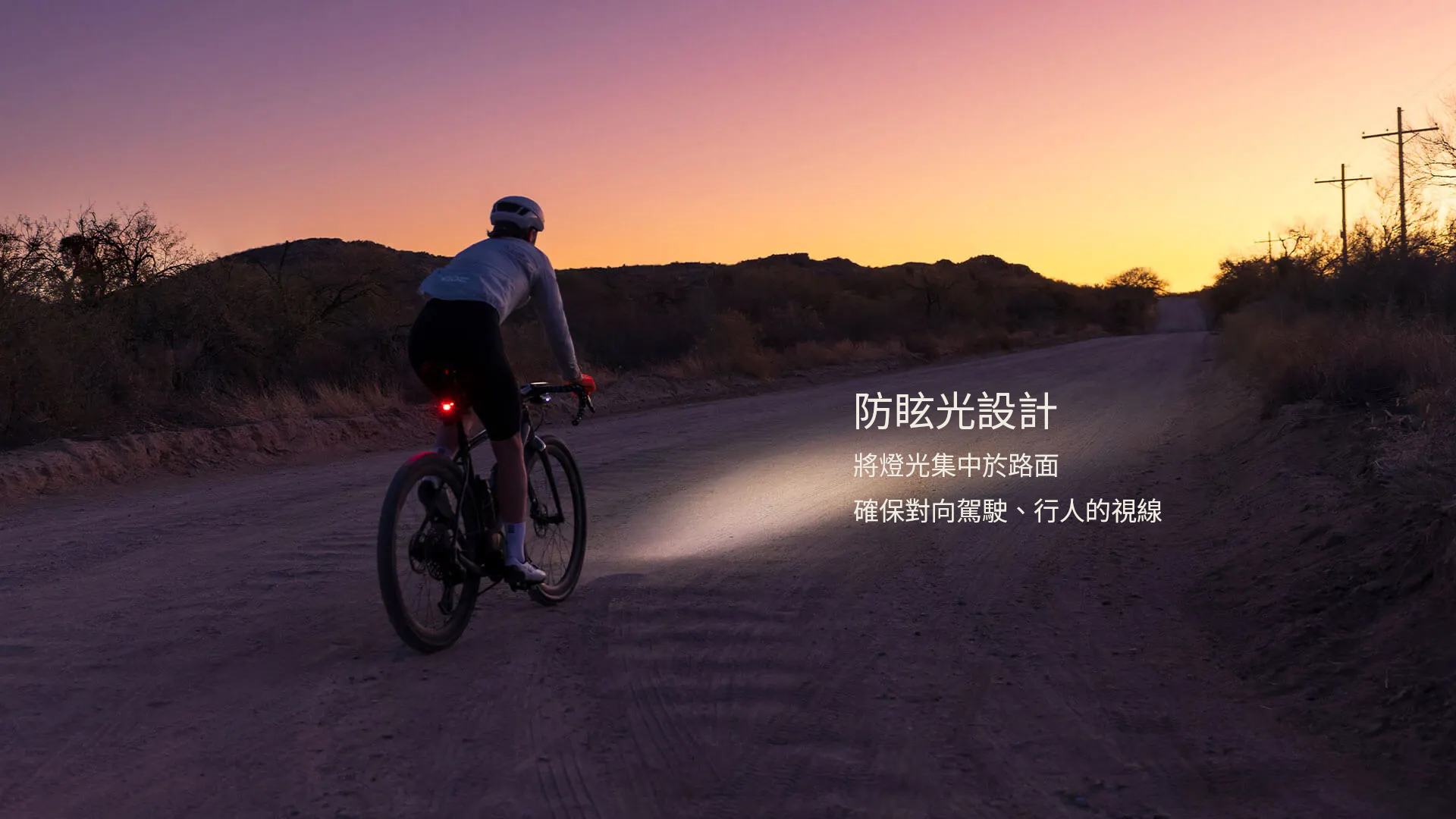 將燈光集中於路面,確保對向駕駛、行人或其他自行車騎士的視線。